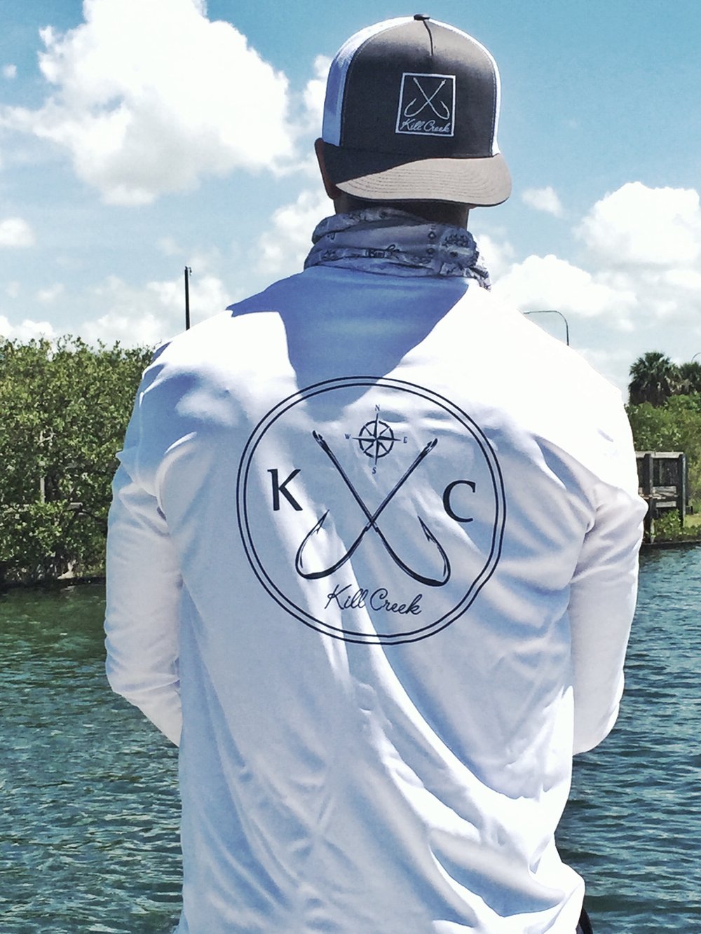 Our "El Capitan" on a Long-Sleeve Crew Neck featuring UPF 50+ Mega Solar protection with moisture wicking